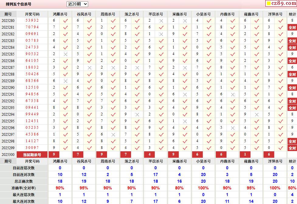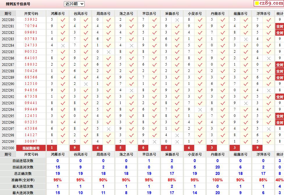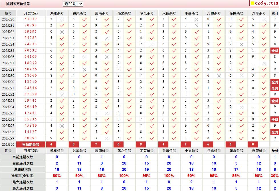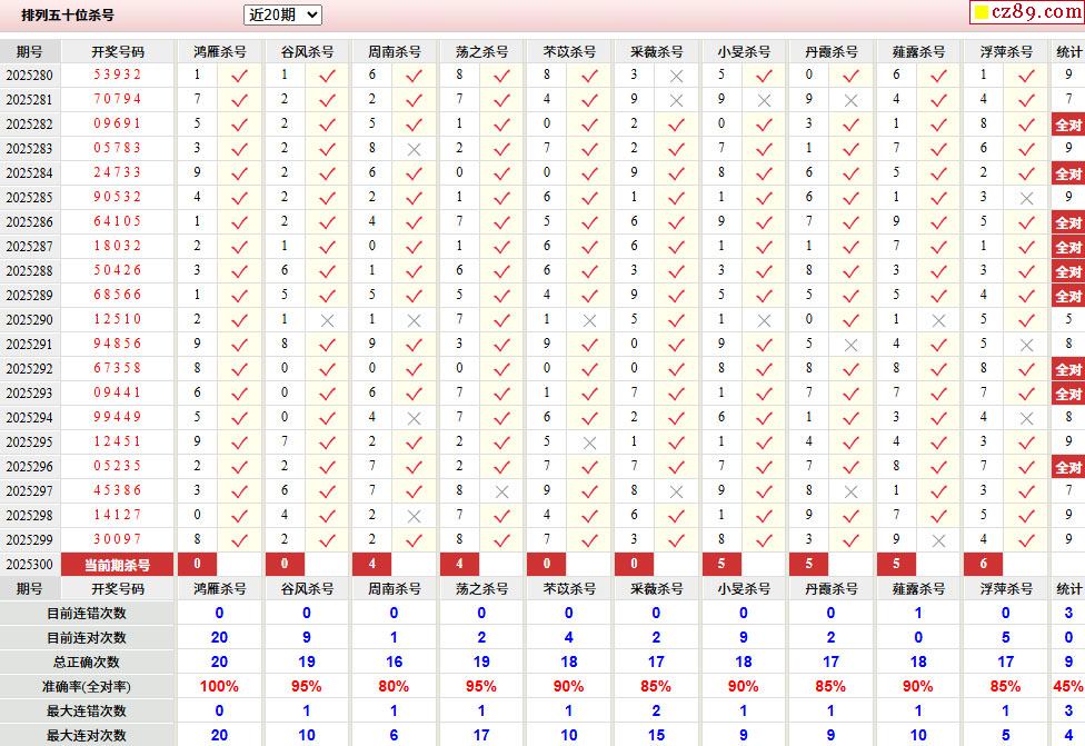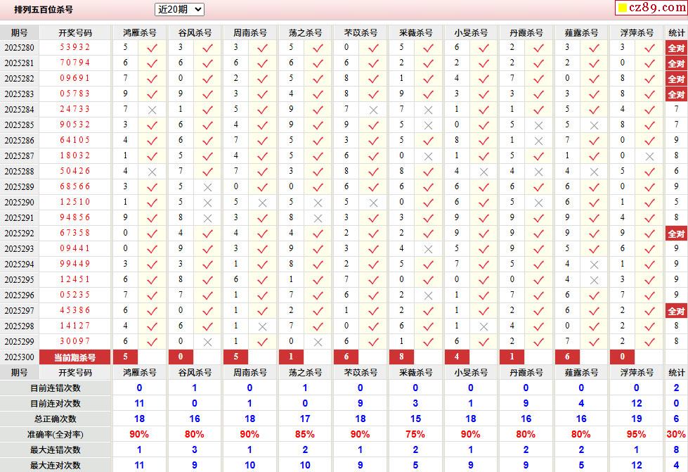 > 300期彩票专家体彩P5杀号推荐图表